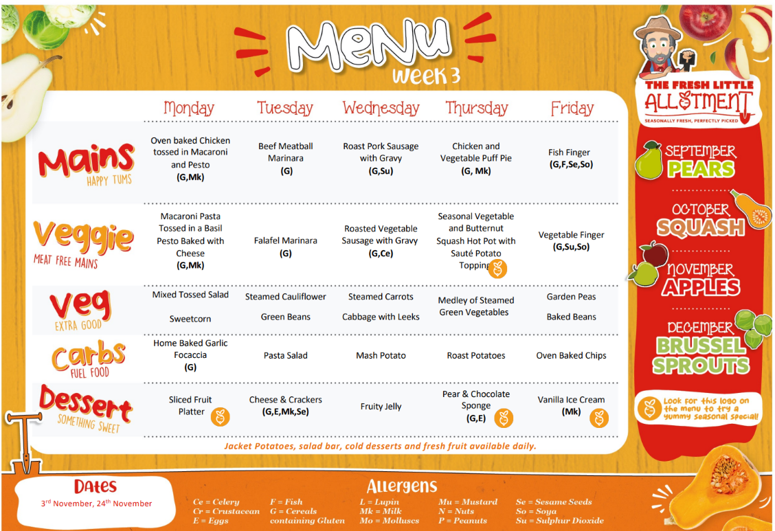 We are able to cater for the individual requirements of any pupil who must follow a special diet for medical or faith-based reasons, please ensure you communicate with the school any allergies or dietary needs so that we can make sure accommodation is in place as soon as possible. We are a completely ‘nut and traces of nut free’ school and ask that all packed lunches are free from any nuts or 'may contain nuts', as described on food packets.