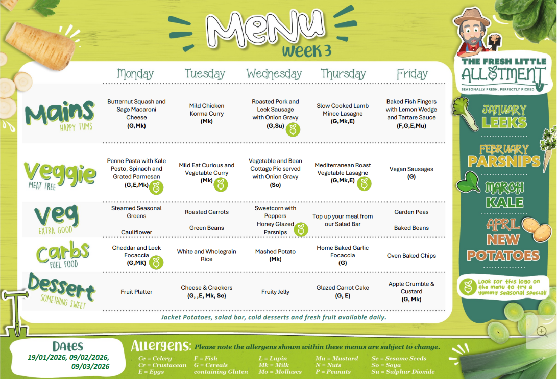 We are able to cater for the individual requirements of any pupil who must follow a special diet for medical or faith-based reasons, please ensure you communicate with the school any allergies or dietary needs so that we can make sure accommodation is in place as soon as possible. We are a completely ‘nut and traces of nut free’ school and ask that all packed lunches are free from any nuts or 'may contain nuts', as described on food packets.